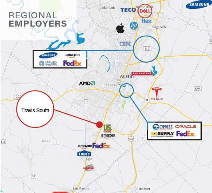 • Tọa lạc giữa Old San Antonio Road và Onion Creek và ở góc Tây Nam giao lộ cao tốc 45 Toll và I-35, về phía Tây Nam thành phố Austin, Texas. Đáp ứng điều kiện USCIS về vùng TEA
